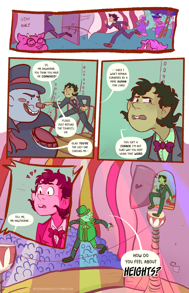 PLEASE keep in mind that Into The Midnight City will always be free to read on intothemidnightcity.tumblr.com, as well as its Tapas and Webtoon pages - though this PDF's initial release was months before the webcomic updates have caught up!